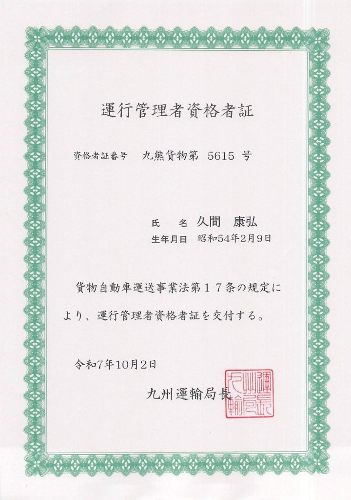 ​KMGゴールド(運送業監査業務マスター行政書士)資格取得